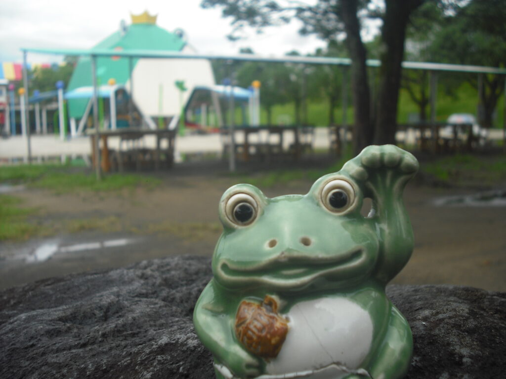 遊具広場で皆さんをお待ちしています。~~~~どこにいるか🐸を探してみてね。