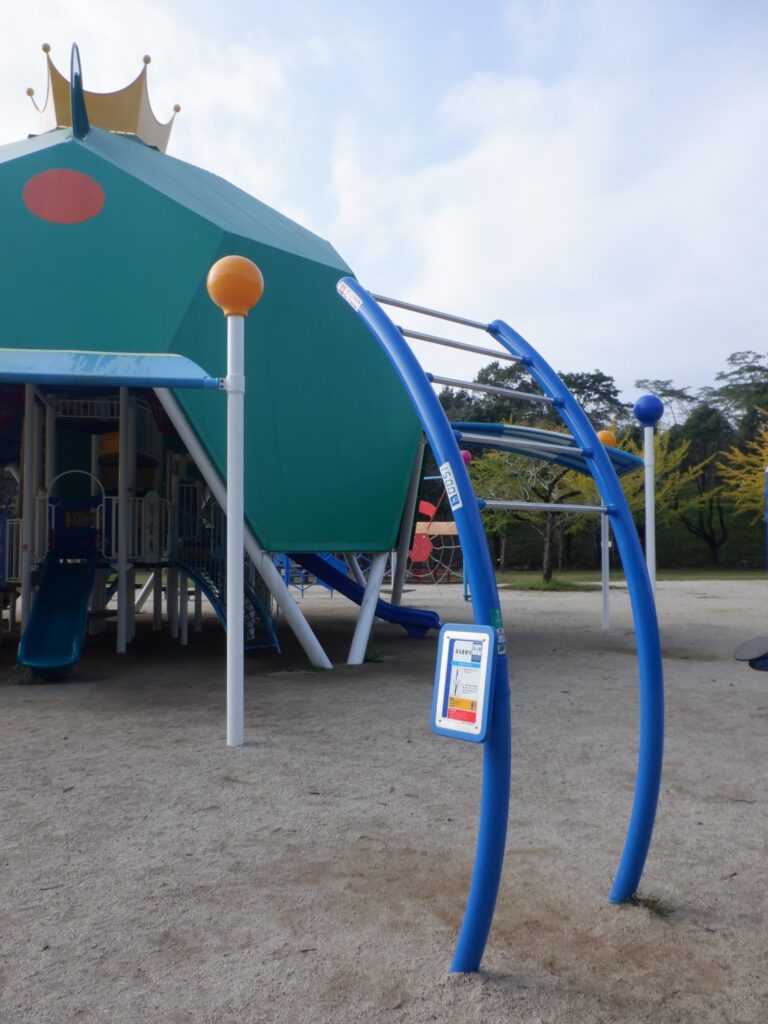 ケロケロコンビの周りには、足を伸ばしたり、ぶらさがったりできる遊具もありますので、体を動かすのにちょうどいいですよ!!