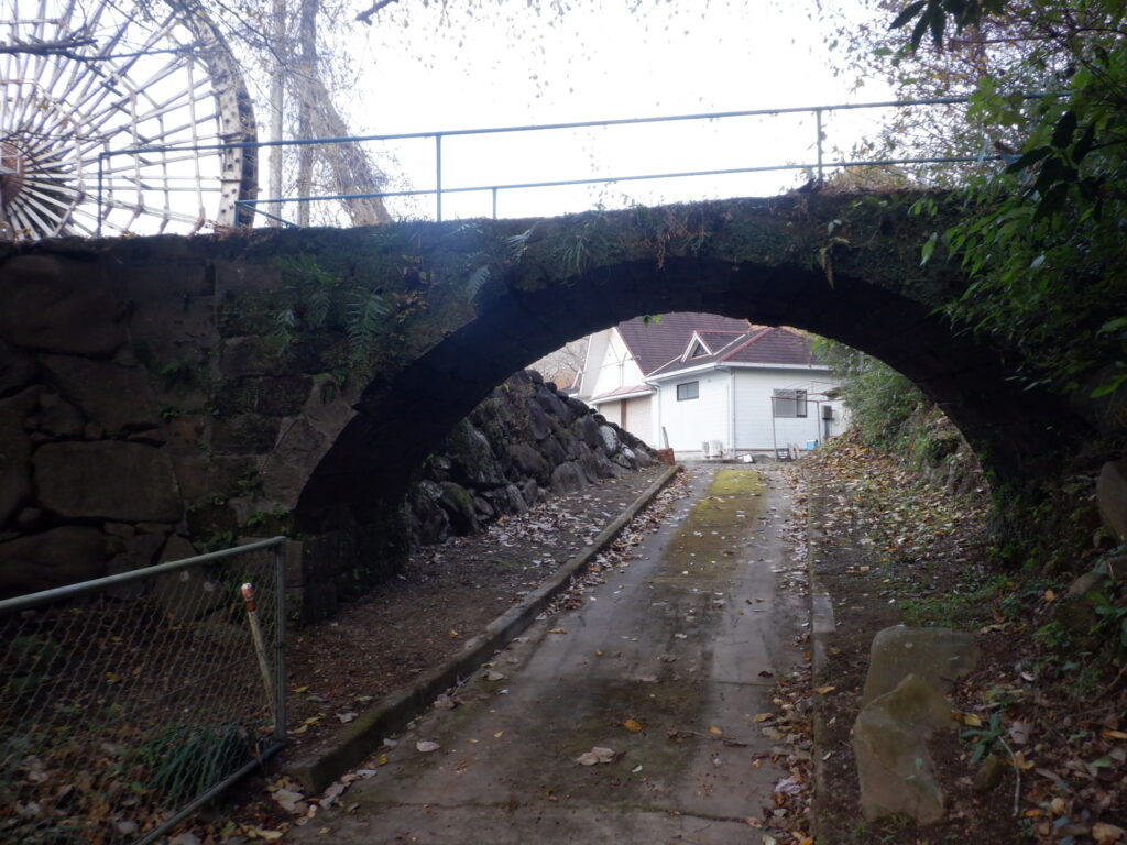 園内のプール近くの遊歩道入口にあります太鼓橋です。
