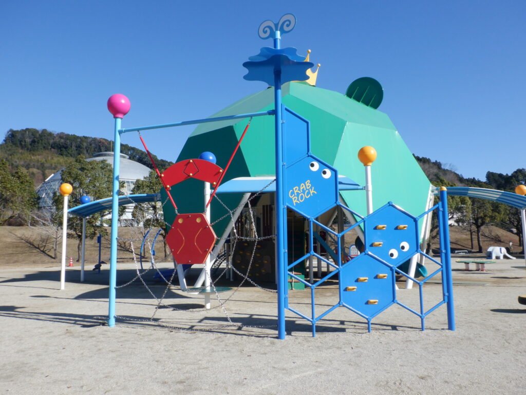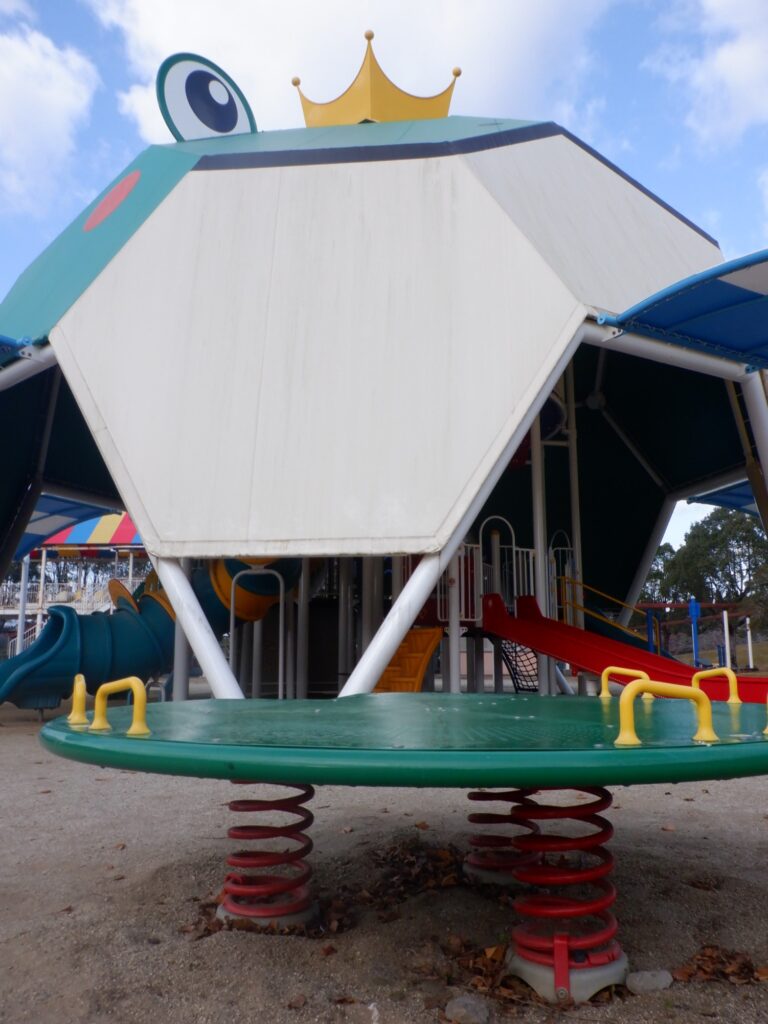 ケロケロコンビ遊具ではバランスを取りながら、跳ねたり登ったりして
