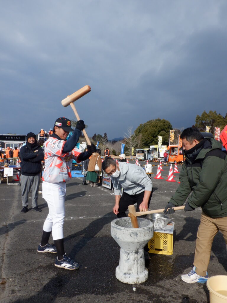 【会場では餅つき】