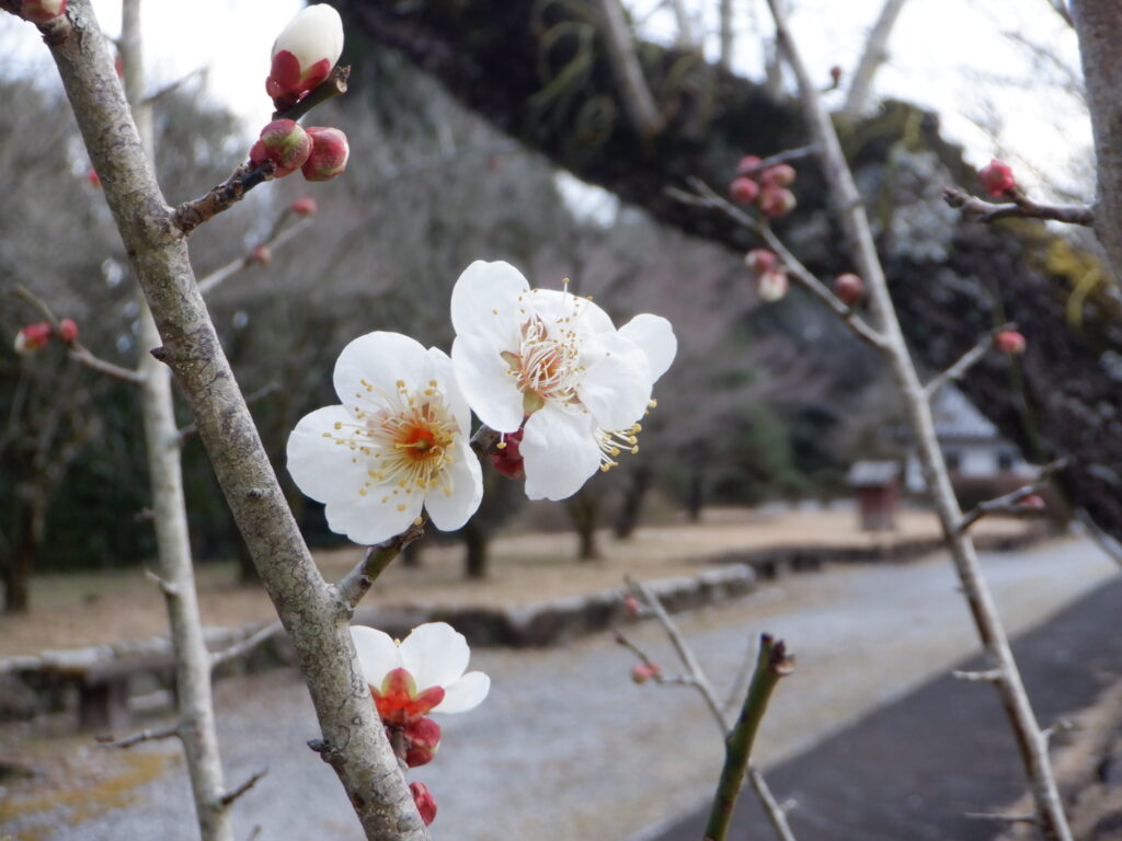 のじりこぴあ資料館前の梅が咲き始めました。