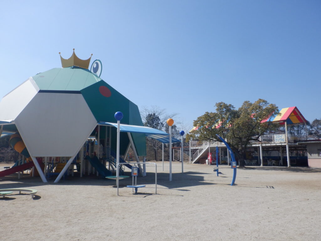 ケロケロコンビ遊具やスカイサイクル、スキッドレーシングに乗って遊んだり、