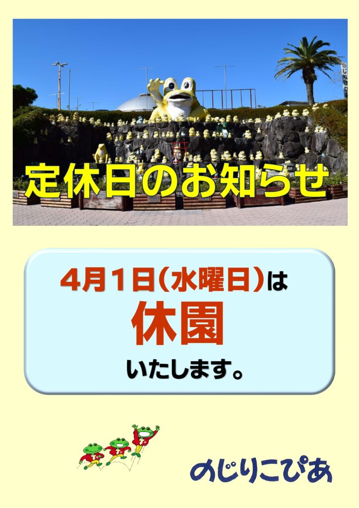 4月は、1日(水)が定休日です。